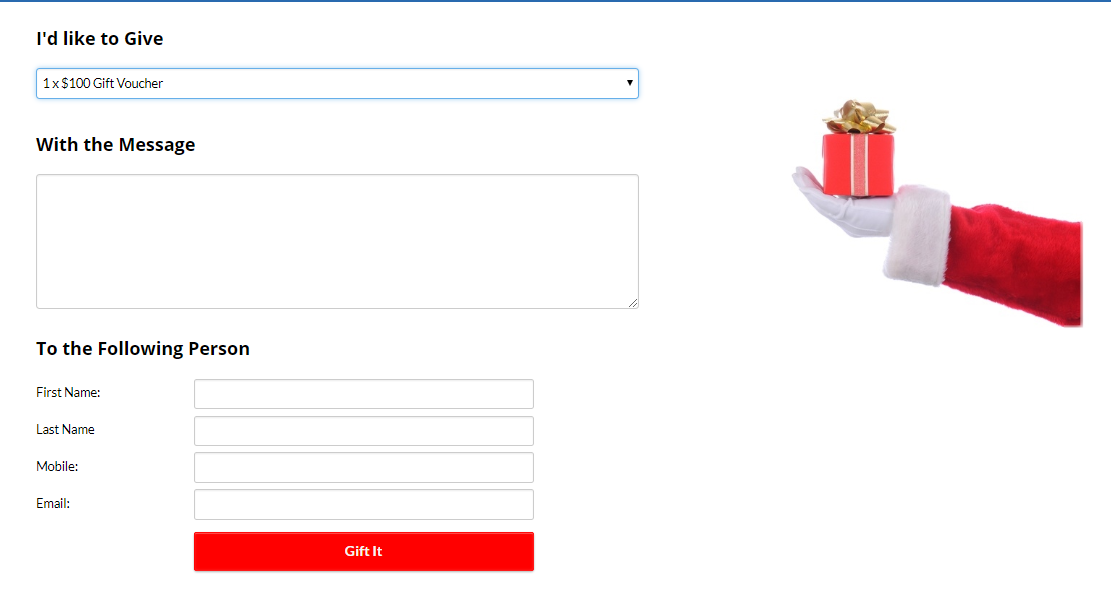 Once you click on the “send gift voucher” option, you can then include a message to your loved one and you can fill in the details for the person receiving the voucher.